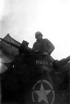 Donald Herriot (Tec5 Etna OH) on tank-Alsace-part of barn blown away