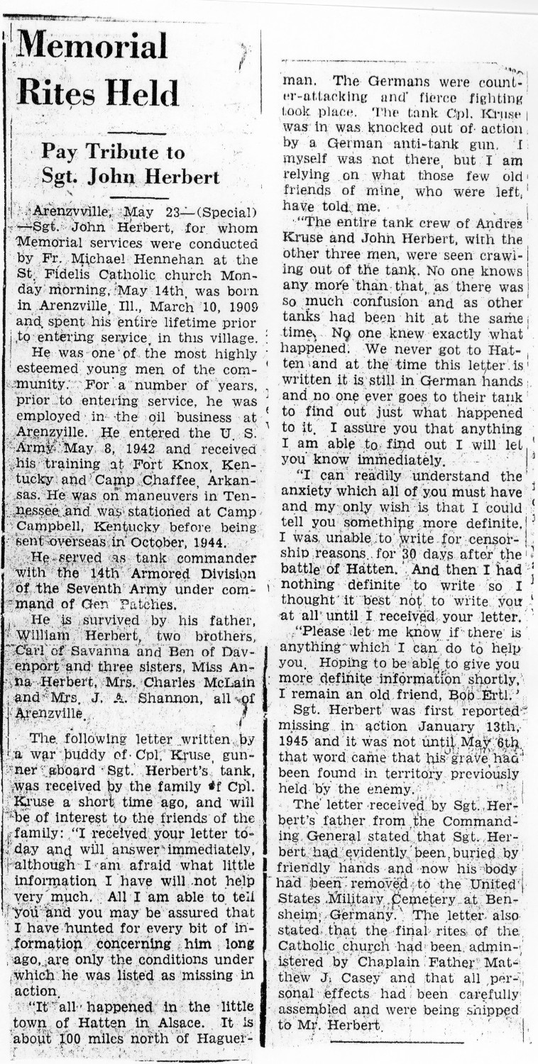 C Company - SGT John W. Herbert KIA 13 JAN 1945