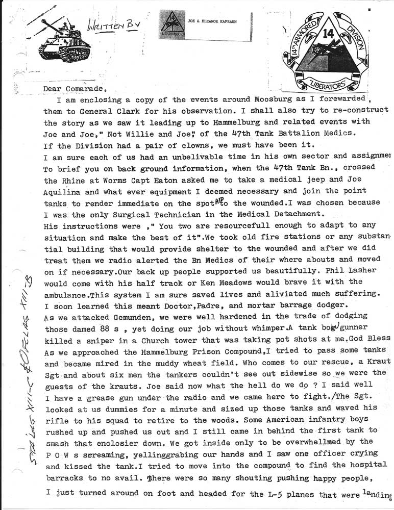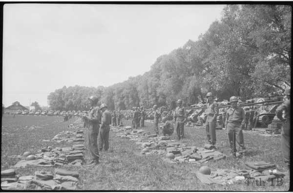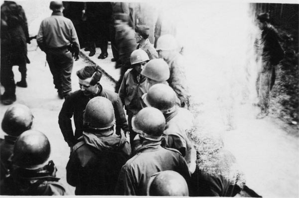 The kid with no hat is from our battalion who was captured at Hatten, France. He was in the prison camp we took at Moosb...