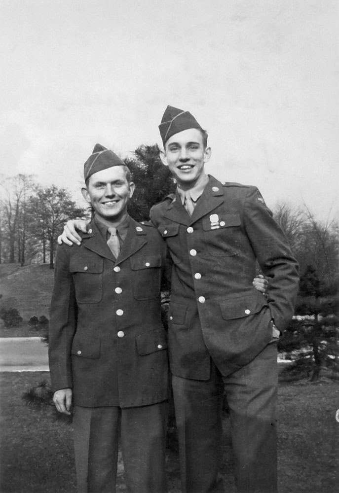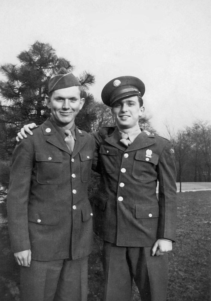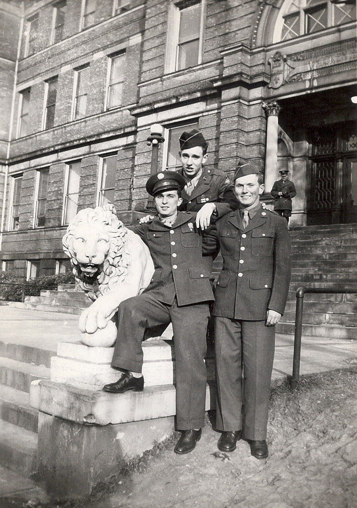 Robert Wildemuth, Carl Baczenas and Irving Near in Cincinnati, OH. January 1944 taken in front of McMicken Hall, Univer...