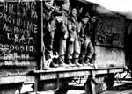 The Aquarium, NYC Oct '44 before shipping out. L-R: T/4 William Rein Paducah KY, T/5 Richard Williams Elmira, NY, Rober...