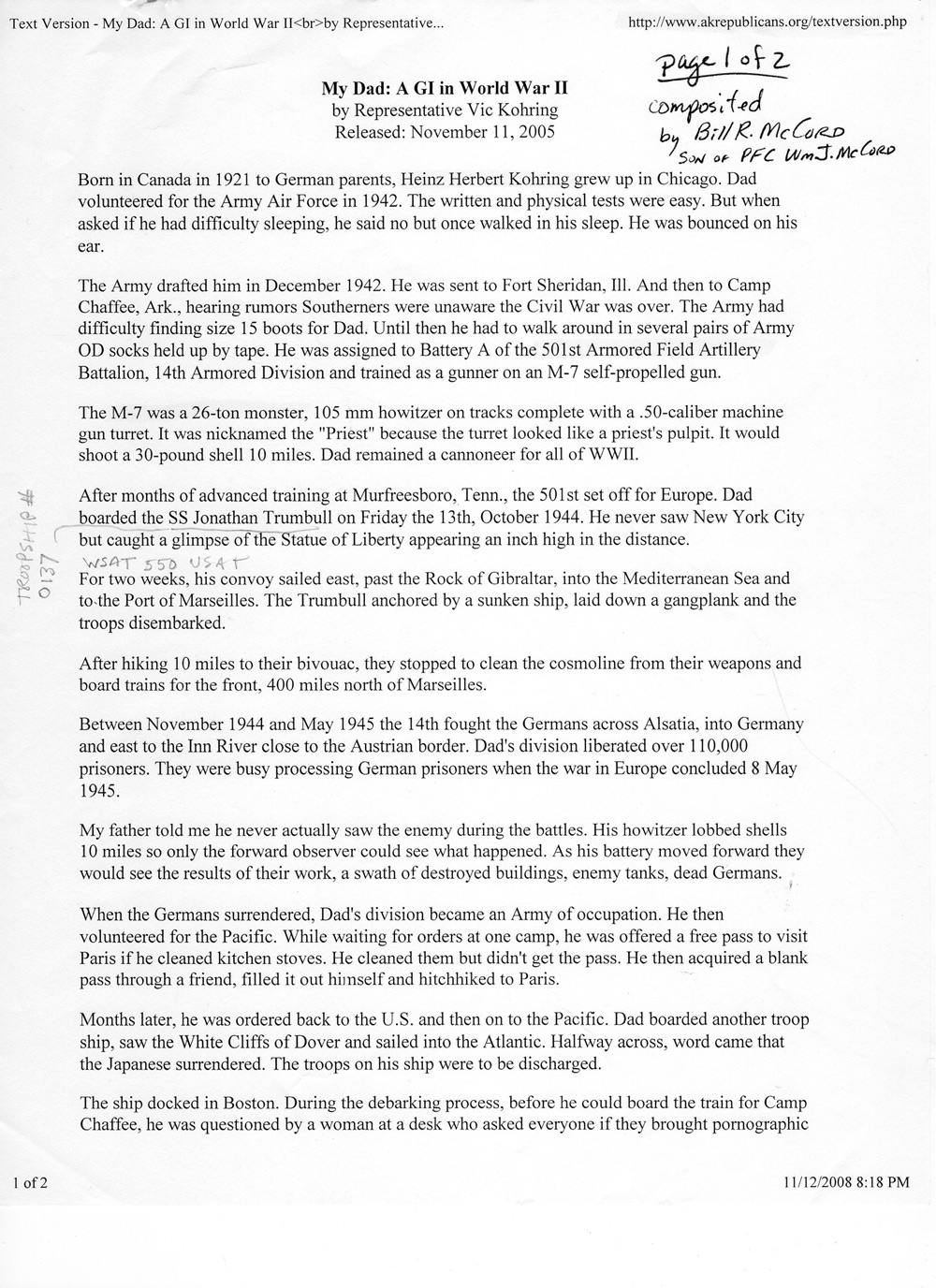 B Battery - T/4 Glenn H Thompson / Weyer, France January 1, 1945
