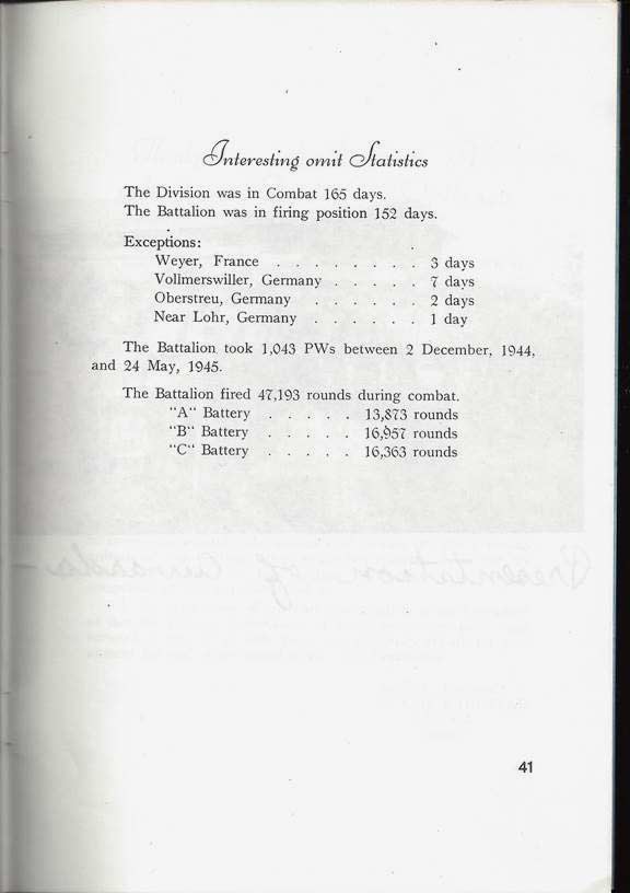 B Battery - T/4 Glenn H Thompson / Fired a lot of rounds from position near Ingwiller, France January 1945