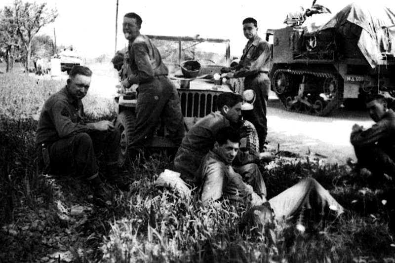George Warren, Leslie Wilbur on M3 halftrack in an Alsation town c.1944