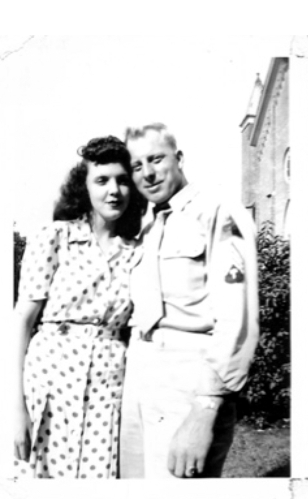 B Battery - T/4 Glenn H Thompson / L to R Iva Jones / Glenn Thompson March 1945 – location unknown