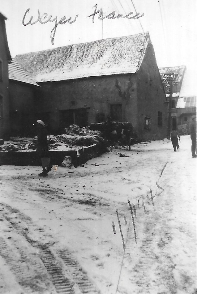 B Battery - T/4 Glenn H Thompson/ Weyer, France January 1, 1945 – What is left of someone’s house – Everyday sight – Loc...