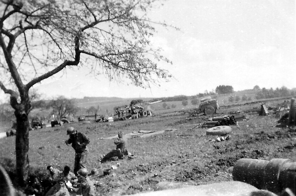 B Battery - T/4 Glenn H Thompson / Batteries A and B firing position for attack on Allerberg around April 20 – 23. 1945