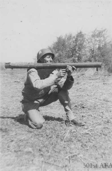 B Battery - T/4 Glenn H Thompson / A Battery 501st firing over the hill at enemy targets – First day after joining Patto...