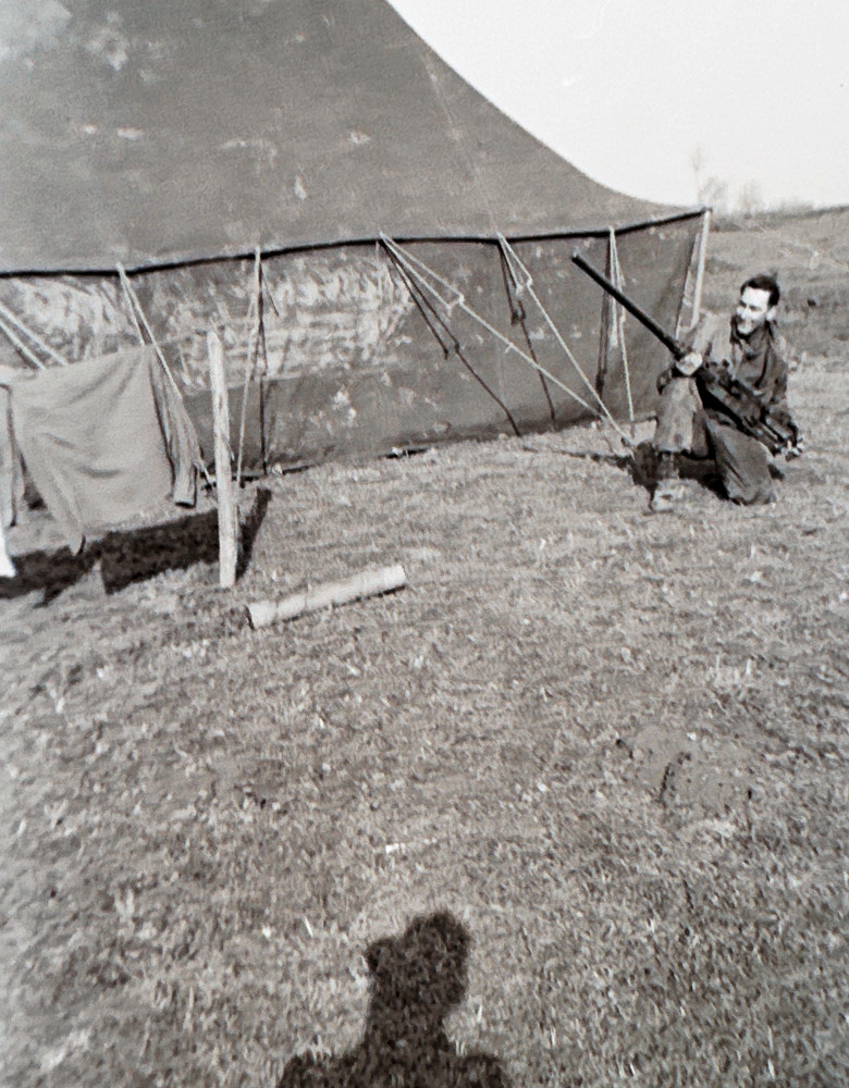 B Battery - T/4 Glenn H Thompson / October 1944 near Marseille, France in front of the supply tent